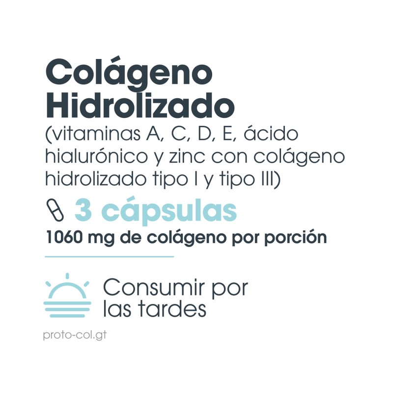 • Colágeno por porción: 1060 mg (3 cápsulas)