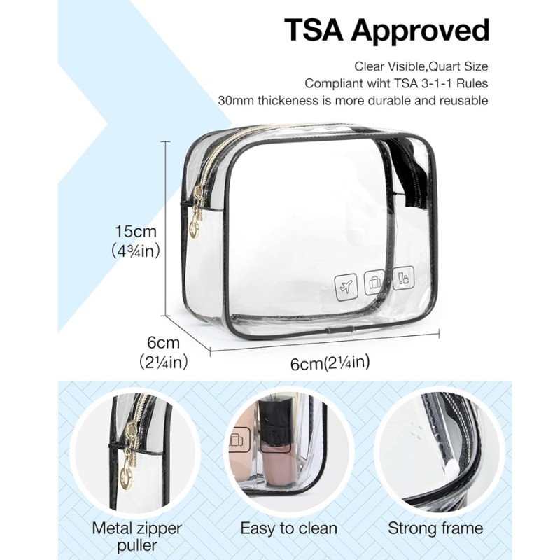 - Apto para viajes: el neceser transparente aprobado por la Administración de Seguridad en el Transporte (TSA) cumple estrictamente con las normas 3-1-1. Fácil y rápido de pasar a través de la seguridad del aeropuerto.